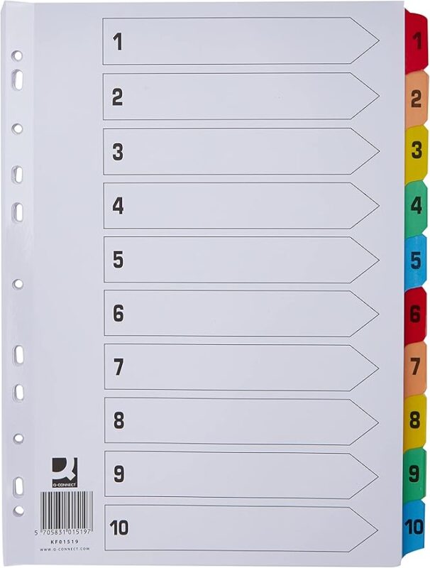 Q-Connect 1-10 Index Multi-punched Reinforced Board Multi-Colour Numbered Tabs A4 White